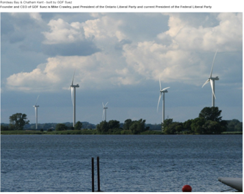 Two locations illustrate the concentration of wind turbine in proximity to homes in Parkhill Ontario and Chatham-Kent along the Lake Erie shoreline, Ontario. Locations are 35 miles to 63 miles east or northeast of Detroit Michigan.