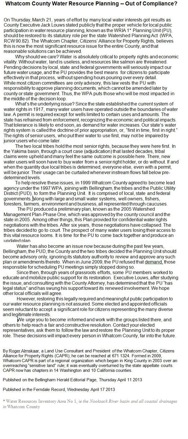 The letters below are from Whatcom County public records that express personal experiances and concerns of your rural neighbors in Whatcom County. CAPR neither approves, disapproves or endorses these views and the content of these letters is provided as background information for the reader only.